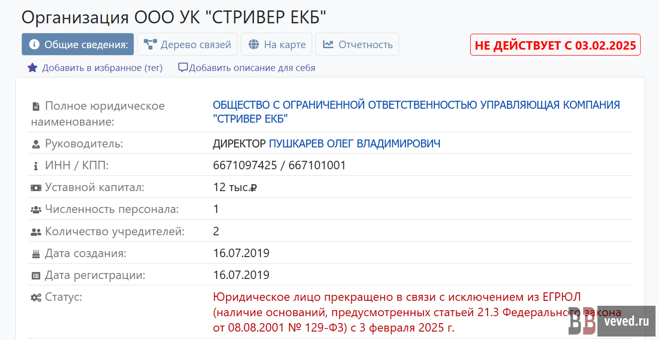Компания-подрядчик была ликвидирована в феврале 2025 года