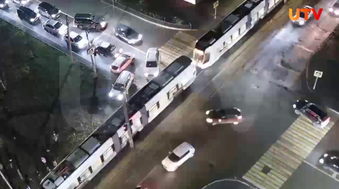 22 октября «уральско-польский» трамвай из-за поломки перекрыл движение на оживлённом перекрёстке в Уфе. Ккадр из видео UTV
