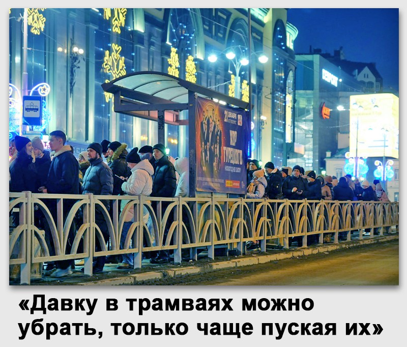 : А что делать с давкой в трамваях? Например, в Академическом невозможно влезть, «уехать с Гринвича» практически невозможно без давки.