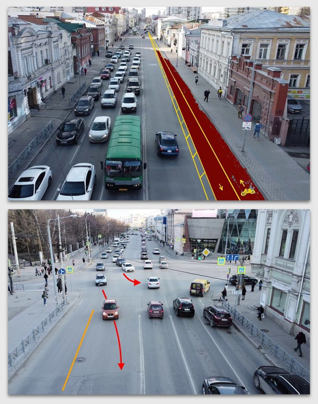 Большинство улиц у нас не будут реконструироваться в ближайшее время, в таких случаях велополосы можно сделать за счёт проезжей части. Где-то это возможно, где-то – нет. Опять же, не надо делать сразу везде. Можно начать с пилотного участка, например, мы давно предлагаем попробовать сделать велополосу на участке улицы 8 марта от Радищева до Малышева. Сделать летом, посмотреть, как работает, собрать обратную связь. Это нормальный путь.