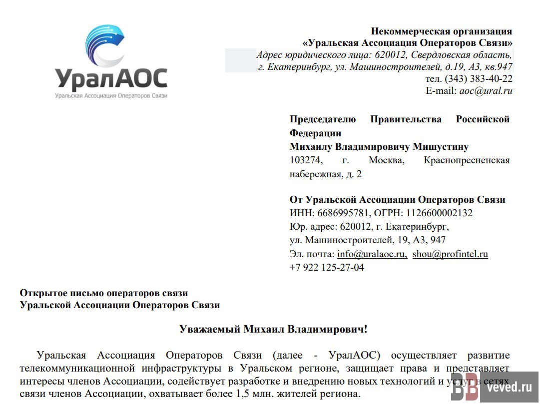 В УралАОС входят, в основном, операторы проводного интернета. Обращение Мишустину направлено от имени ООО «ИНСИС», ООО «Электронная сеть», ООО «КонвексКаменск», ООО «Компания Эрланг», ООО «Интерсвязь-Урал», ООО «Сухой лог Интерсат», ООО «КАТ-Телеком», ООО «Новейшие телекоммуникационные системы», ООО «Цифровые сети Урала», ООО «Инфоком», ООО «Гарант», ООО «Асбестовский техноторговый центр «Гарант», ООО «Айпибум Телеком» и ООО «УРАЛНЕТ».