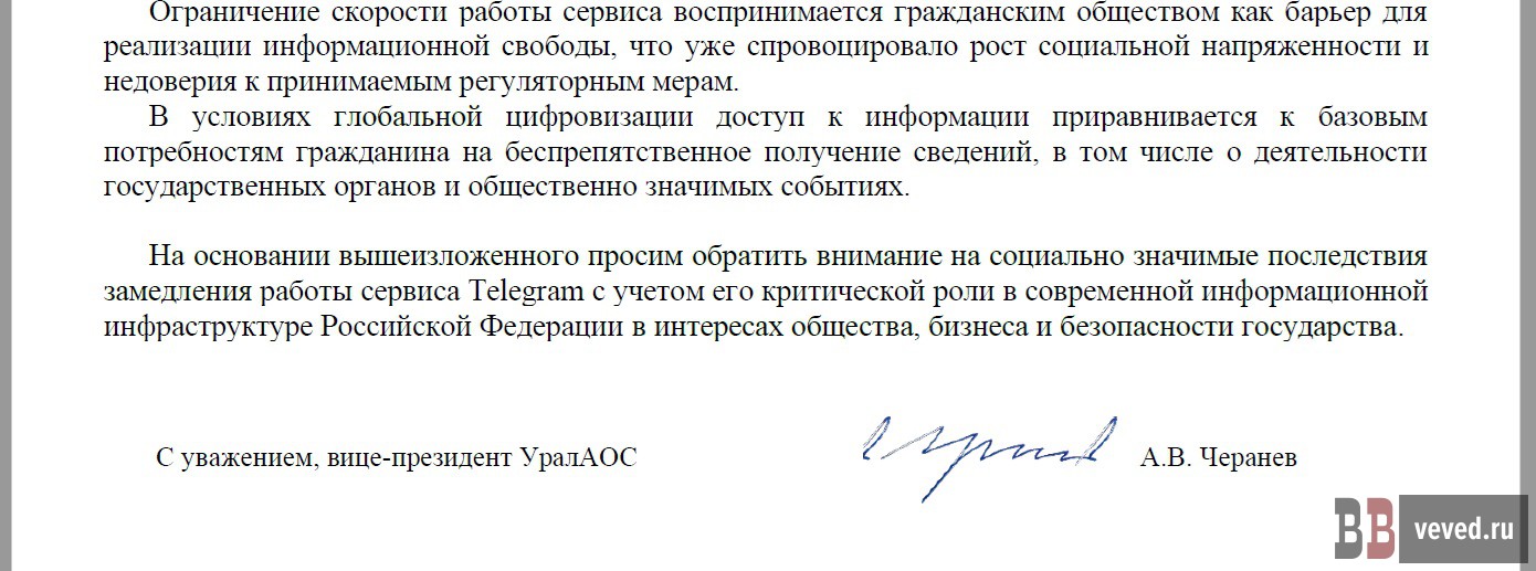 Уральская ассоциация операторов связи (УралАОС) направила председателю российского правительства открытое письмо, в котором указала на негативные последствия ограничения мессенджера Telegram в России.