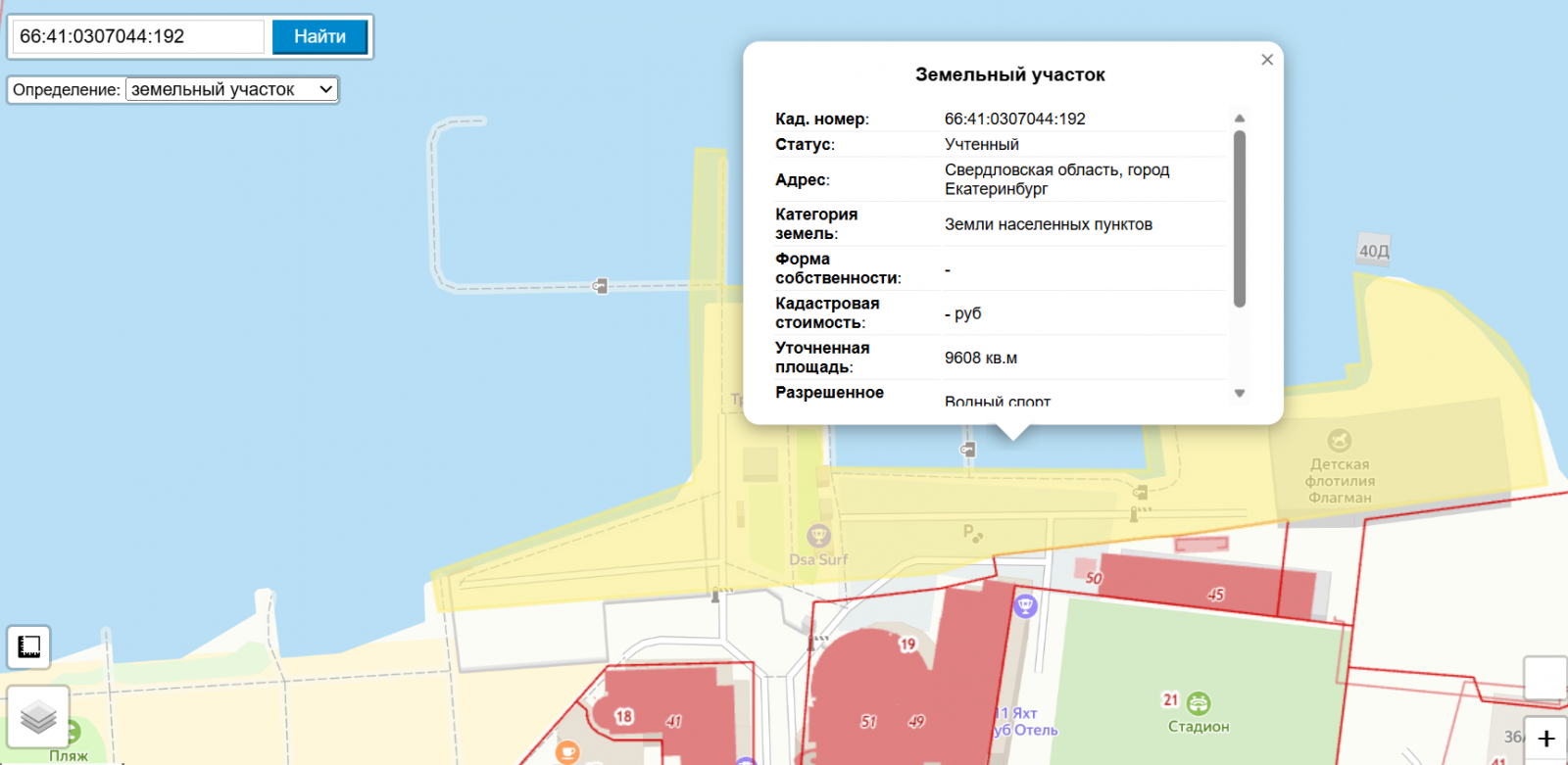 Участок со спорными пирсами. Иллюстрация: публичная кадастровая карта